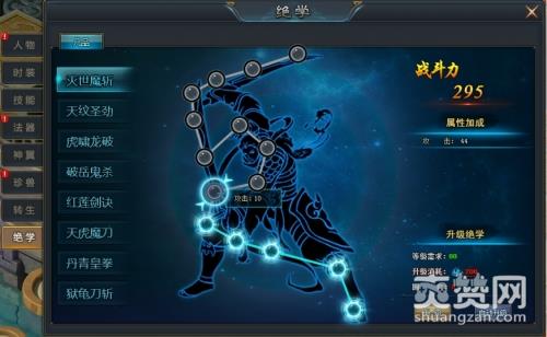 在武动苍穹中,流传着各种各样的武功绝学,玩家除了职业技能之外,还可以通过提升绝学来增强战斗力。现流传下来的凡品绝学就有灭世魔斩、天纹圣劲、虎啸龙破、破岳鬼杀、红莲剑诀、天虎魔刀、丹青皇拳和狱鬼刀斩等等,还有珍品、仙品等更高级的绝学。这些心法都可以大大提升战斗力。