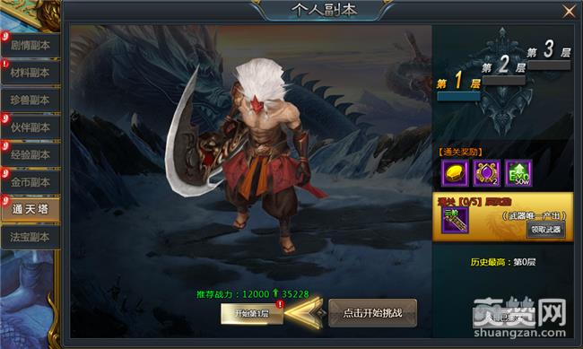 遨游三界怎能少了神兵利器?传闻天下神兵利器,被武神收集并藏于通天塔中,引诱各路英雄前往争夺。但武神暴虐嗜血,将被引诱之人永远禁锢于通天塔,遭受无尽的折磨,化为怨灵鬼怪,守护通天塔,BOSS们无论哪一个都拥有毁灭天地之能,勇士们,是成为BOSS们的祭品,还是用超神之力终结这场杀戮,取得神兵利器!