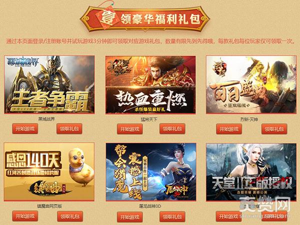 2019会流行什么游戏?如何才能走在时尚的前沿?《黑域战界》、《猛将天下》、《烈斩·灭神》……总有一款适合你,杀怪爆装赢豪礼,我们不玩虚的!凡通过活动页面登录/注册账号并试玩游戏3分钟的玩家,即可领取对应游戏礼包,数量有限先到先得,每款礼包每位玩家仅可领取一次。