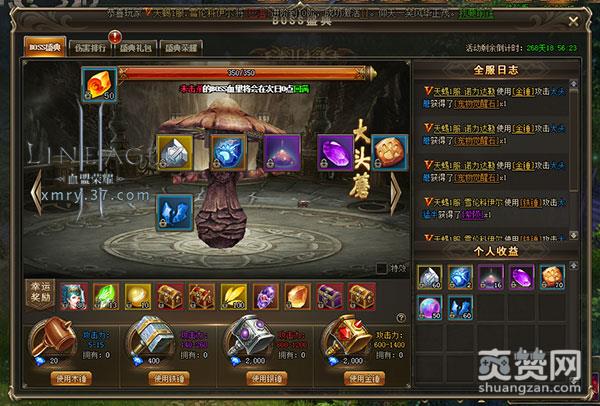 在活动期间,累积对BOSS造成伤害最高的三位玩家将获得排行大奖;充值任意额度即可领取盛典礼包;在活动期间,将会开放盛典任务提供给玩家完成,完成任务会获得荣耀点,当荣耀点达到一定数量后便可领取对应的荣耀奖励。