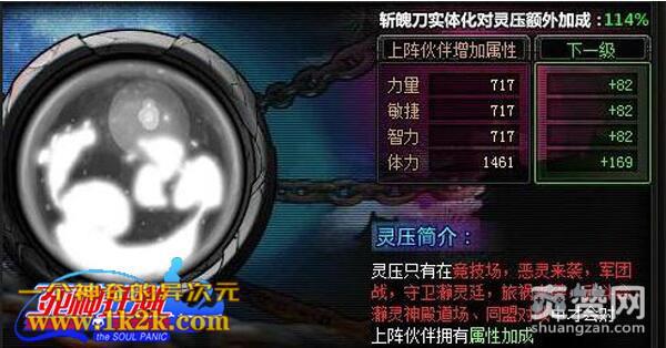动漫的斩魂刀会不断的变强,那么在1k2k《死神狂潮》里的斩魂刀也许是如此,变强的关键所在也继承动漫特色就是灵压。灵压是专门属于武器斩魂刀的提升实力的办法,灵压本身就只在“死神”中才有的所以说是独家秘方,通过修炼灵压可以提升斩魂刀的属性压制对手。