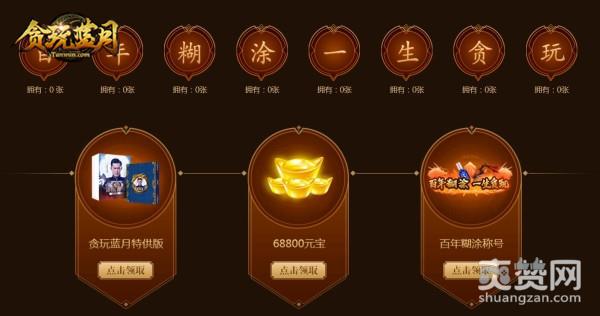 同时,“百年糊涂 一生贪玩”专题福利活动期间,《贪玩蓝月》的玩家集齐“百年糊涂,一生贪玩”这8张卡牌,就可以兑换价值688元的“百年糊涂-贪玩蓝月特供版”或者68800元宝或者是“百年糊涂 一生贪玩”限量版游戏称号之后三大豪华大礼啦!