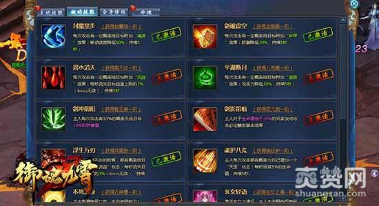 腾讯平台《御魂九霄》中玩家可以学习各种主动技能及被动技能,主动技能分为火、冰、风、雷四种,而被动技能则多达十八种。不同类型的被动技能需要通过达成各种条件来激活,激活后即可持续生效。