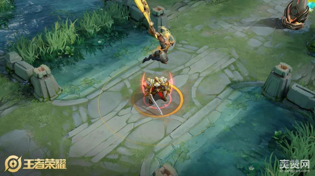盘古朝指定位置跳跃,落地时对内圈的敌人造成伤害,如果落地时内圈没有敌人则获得50%的加速效果。如果落地时外圈有敌方英雄,盘古会立即冲向敌人,如果在冲刺路径上遇到敌方英雄会将敌人击退并造成伤害同时自己停下。