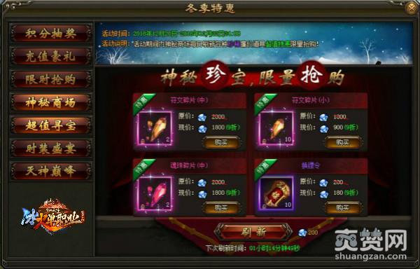1月10日-12日活动期间,神秘商场每日刷新各种珍稀道具,打折出售限量抢购。神秘商场每2小时刷新一次,或花费200钻石直接刷新。