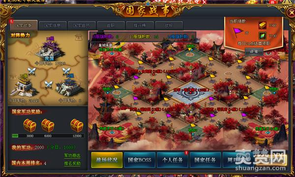 在360uu《武动苍穹》的国家战事中,一片独立开来的世界为你展开,在战事地图内,共有20片区域等待三个服务器的玩家前来争夺,一个旗帜代表一个地点,玩家们可以对实时战况一览无余,而这里便是你将投身而入的战场!而在国家战事总,众多精彩玩法也都将为你一一呈现,任务系统、国家BOSS、跨服对阵赛搭配热血激情的PK格局,这里就是你不可错过的仙界战场!在个人任务系统中,完成各国给予的任务要求,包括夺旗、运送、讨伐,每一项挑战都拥有截然不同的玩法,完成人物后,便有各种稀有奖励与军功等待你来领取!