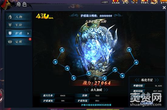 其次是护盾系统,玩家的护盾可以吸收额外的伤害值,在护盾值消耗殆尽前可以按 照比例抵消一定的伤害,而升级护盾可以使吸收的伤害更大。护盾值的来源于玩家 将不需要的装备炼化后产生,玩家炼化掉的装备会消失,成为护盾值进入护盾系统 。