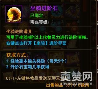 43u《傲战无双》中坐骑从4阶升5阶开始就可以用坐骑进阶石代替灵力来进阶坐骑,坐骑进阶石主要有以下7种获取方法: