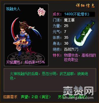 祝融夫人是高格挡的坦克职业,兼具高攻击和高防御,可谓是平民的通关利器。作为游戏中最早解锁的几位神将之一,祝融夫人招募也十分容易。如果玩家能好好培养这个角色,就算是在PVP中,也是有一战的余力的。