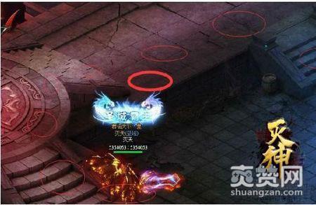 但是你不能把BOSS引导下面你站在上面打,这样是达不到的,而且你还会自动跑到BOSS跟前。引导BOSS到这个点它会站着不动让你打。你要跑快一点,尽量BOSS站到大红圈,就站到人物的地方。萝卜玩《灭神》“魔灵幻狱”所有BOSS都可以用这个方法卡,!哪怕你只有20多万战力也可以打,就打的慢了点。