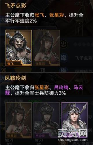 首先来看张星彩的五维属性。作为武力将,她的初始武力值就高达96,这一数值在所有名将中都是排名比较靠前的,仅次于吕布、张飞、关羽和马超。在突破之后,她的武力值还额外增加了1点,达到了97,足以胜任骑兵先锋的位置。而在缘分搭配上,张星彩不仅能与张飞组成“飞矛点彩”的父女组合,提升全军行军速度2%;还能与吕玲绮、马云騄组成“凤鞍玲剑”的巾帼组合,提升全军士兵防御力3%。对于已经拥有张飞、吕玲绮、马云騄的主公来说,张星彩的加入可谓是如虎添翼。