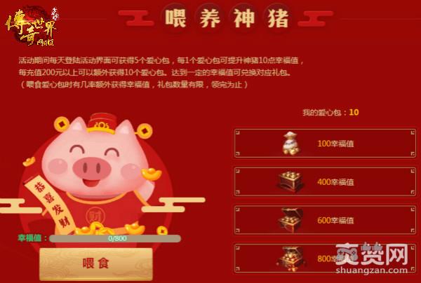 1月21日-27日活动期间每天登陆活动界面可获得5个爱心包,每1个爱心包可提升神猪10点幸福值,