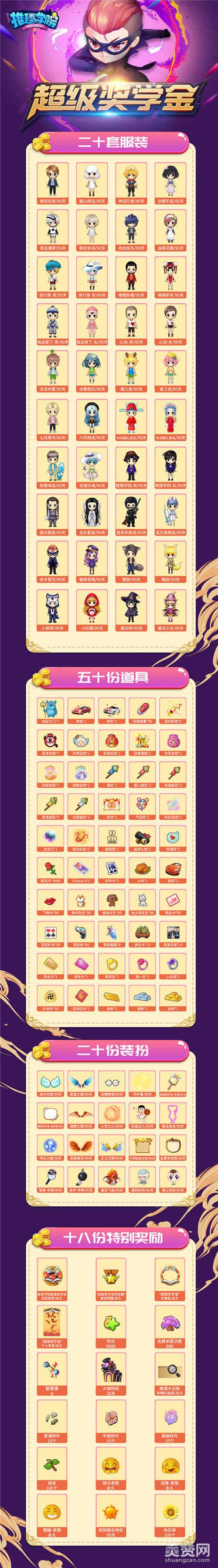 根据“超级奖学金”活动规则,所有奖励均为“超级奖学金-幸运玩家”独享,不可转赠他人,所有以上奖励均为绑定,不可交易。