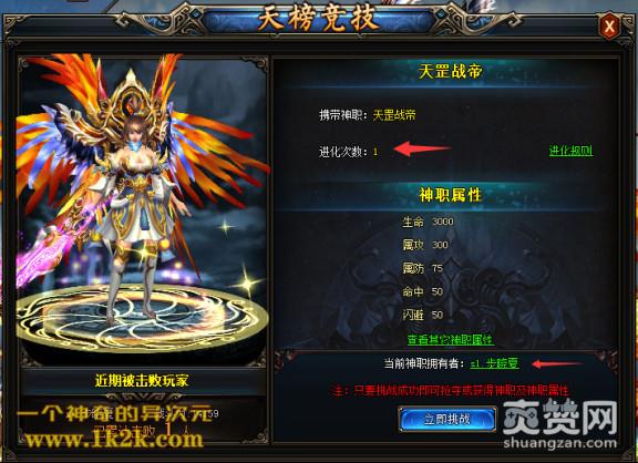 2.天/地榜上共有6个位置可以挑战。越高层的天神挑战难度越高。
