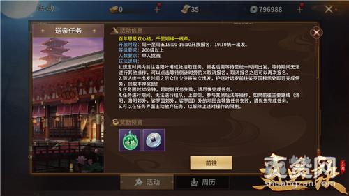 《逍遥诀》的少侠们只需达到玩法指定等级,在活动时间内参与“送亲玩法”即可将新娘子叶远安一路护送至新郎穆乐处进行拜堂成亲。但是,别以为送亲只是简单地跑跑任务,加入了送亲队伍的少侠们步速将会变慢,也不能使用御剑进行飞行偷跑哦!从远安父亲叶甫成领取任务后,少侠需先按照规定路线陪送新娘寻到对应的NPC和走完相关的任务点,完成任务即可获得丰厚的奖励!