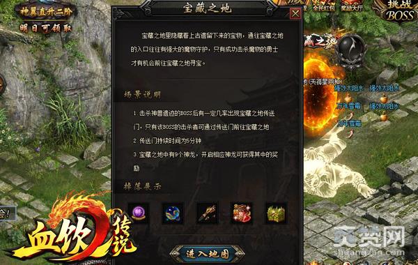 隐藏之门的后面,藏着9条金龙封印,每一条金龙都镇守着来自远古的宝藏,其中不仅有圣物强化道具,还有极其稀有的8级宝石,和神秘箱子。但是,9条金龙封印长得一模一样,从外观上你根本无从判断到底哪一个下面才是你要的宝藏。所以,赌上自己的人品,挖宝吧!