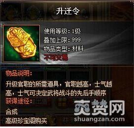 升迁令这么重要,大家在挂机时可一定要多多收集材料合成,也可以直接花元宝买,更加省事。