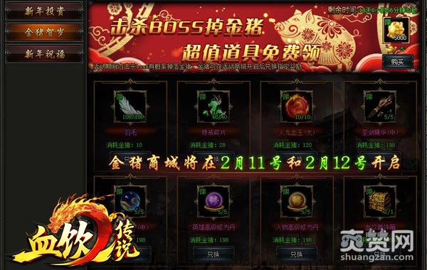 从某一刻开始,《血饮传说》整个世界都陷入了“掉金猪”的狂欢中,打BOSS掉金猪,有活动买金猪。那么这个金猪是干什么用的?答案很简单,金猪越多,玩家们可以兑换到的超值道具也就越多,其中不乏大型道具的踪迹。而这一切便是《血饮传说》春节狂欢前奏曲的开始!