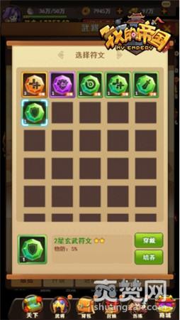 当37《我的帝国》的玩家将符文装备在武将身上时,可以分别提高武将的攻击、物防、生命、命中、闪避、抗暴、暴击和法防属性。符文还可以进行升级和升阶,符文升级需要消耗符文升级材料,而符文升阶则需要消耗进阶石和符文。
