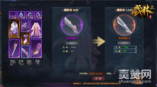 试炼一、二、三在前100级时很多高手们就已陆陆续续地完成,但就试炼四的“6件装备达到三阶凡品”而言会让不少人为之头痛,介于早前对装备的疏忽,很多人到了百级却并没有配备多件高阶装备,因此需要在后期补足。进入角色面板,消耗装备材料为装备升阶,升阶成功后装备品质得到提升,对应的基础属性也会获得大幅提升!