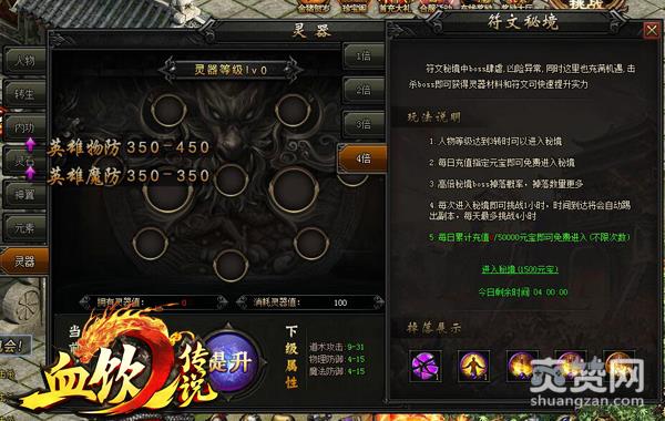 要聊符文秘境,我们得先了解《血饮传说》新晋推出的灵器系统。这么做原因很简单,符文秘境是为了灵器系统而存在的材料副本,秘境中的掉落是为了提升灵器系统。