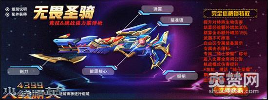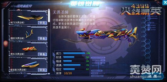 新年巨献,《4399火线精英》全新英雄级霰弹枪主武器“无畏圣骑”登场!该武器可以在本体基础上添加刺刀、握把、弹匣(穿箱伤害不衰减)、准镜(被动-原地不动一段时间后首次开枪伤害翻倍)等数个配件后准备觉醒完整英雄属性。