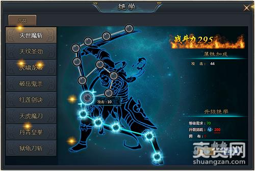 923yx《武动苍穹》中除了这些职业技能外,还有绝学可以学习。除了有凡品绝学灭 世魔斩、天纹圣劲、虎啸龙破、破岳鬼杀、红莲剑诀、天虎魔刀、丹青皇拳和狱鬼 刀斩外,还有珍品、仙品等更高级的绝学可以学习。