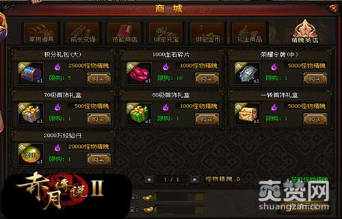 萝卜玩《赤月传说2》怪物精魄可击杀怪物获得,而精魄商店中所售的道具有很多。