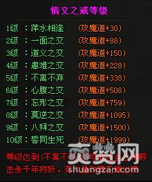在结义之后,当你们的亲密度达到相应要求即可手动提升戒指等级,升级可获得大量攻击属性加成。戒指共分10级,等级越高,攻击属性加成就越高。