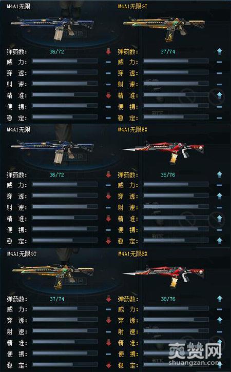 M4A1无限可进阶为英雄级M4A1无限GT以及传说级M4A1无限EX。而他们的武器特效则是逐阶递进的。来看看进阶测试版本的“M4A1无限GT”武器特效以及属性对比吧!