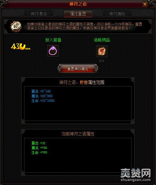 在神符激活时会有一定的属性波动,可以通过重置来获得新的属性。神符激活时属性在一定数值随机,可以通过重置功能重新获得属性。另外激活的神符可以摘除。每次摘除消耗一个29号神符。