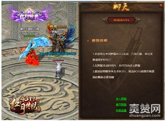 不同服务器的玩家传送到中心服进行跨服BOSS的争夺,BOSS死亡后将会进行BOSS宝藏拍卖,玩家可以一口价买下心仪的道具,或者通过竞价方式获得道具。