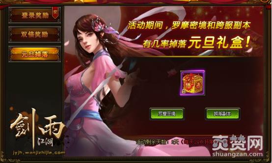 等等,还没完呢!除了以上活动,我们还为大家准备了元旦掉落送惊喜!动期间,玩家在罗摩密境和跨服副本中均有机会获得元旦礼盒,点击打开可以获得染色水晶,装备强化石,进阶丹礼盒,装备精炼石礼包,二级宝石礼盒等随机道具奖励哦!看到这么给力的活动各位大虾们是不是心动了呢?So,心动不如行动,独乐了不如众乐乐,快约上身边的小伙伴一起加入玩机之家《剑雨江湖》中一同体验新年之乐吧!