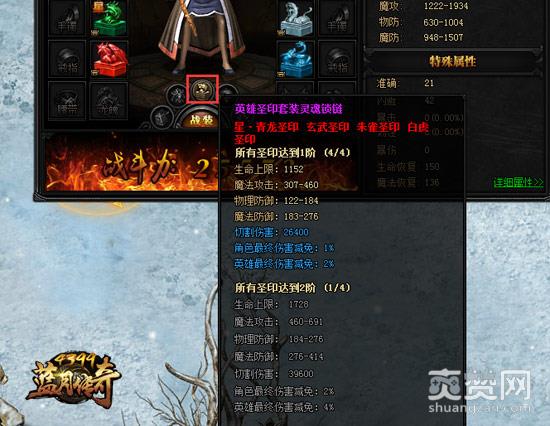 激活“玄武圣印”可额外获得特殊属性:死亡被爆装备概率降低。