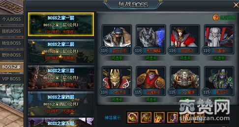 在BOSS之家中,大家可以获得大量的装备饰品,也有机会获得极品装备。不过BOSS之家的进入是有限制的,普通玩家每日进入时间有限,VIP1可以无限进入BOSS之家一层,VIP2可以无限进入BOSS之家二层,VIP3可以无限进入BOSS之家三层,以此类推。