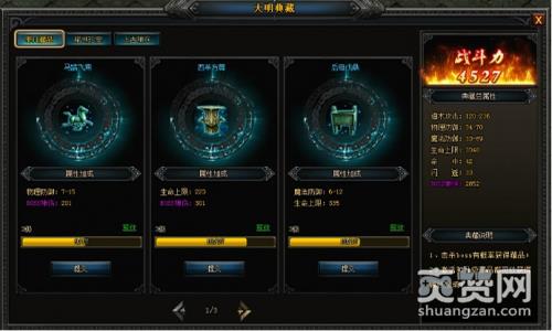 大明典藏的属性可是很客观的哦,种类不一样加点属性也不一样它可以增加人物攻击,物防和魔防,提高生命上限,准确,闪避和BOSS神伤。