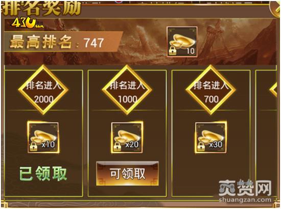 玩家们只要进行了挑战,且突破自身排行即可获得历史排名奖励,奖励大量绑定元宝,每个排行段位历史排名奖励只可获得一次;还可获得每日排名奖励,奖励大量荣誉点数,每日0点进行发放,排名越高奖励的荣誉点数就越多。