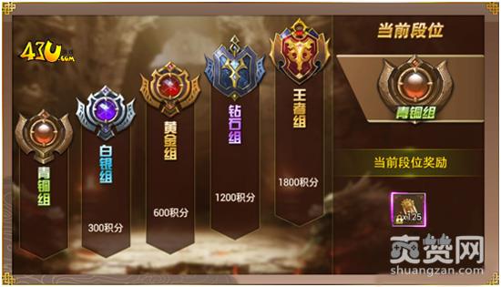 除此之外,玩家们在通关45级主线任务后,可以开启跨服竞技,开启时间在晚上19:00-20:00,根据不同段位划分为青铜组、白银组、黄金组、钻石组、王者组。段位对应分数:青铜组0积分、白银组300积分、黄金组600积分、钻石组1200积分、王者组1800积分。