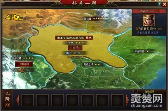 4、驻留不同品级的武将可提升对应品级马匹概率,玩家可以点击右上框更换驻留武将。