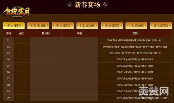 注意!贪玩蓝月现金赛排行榜结算为每个赛区开服第三天的中午12:00,打个比方,3月16日赛区结算时间为3月18日12:00分。在每个赛区的排行前十的玩家都将会获得丰厚奖励哦!