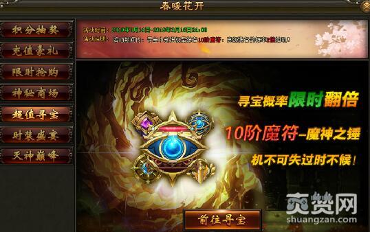 活动期间,王之宝藏可抽取10阶魔符装备!高级装备概率翻倍!活动限时3天,机不可失过时不候!
