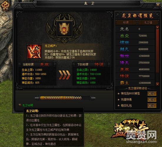 在跨服活动中会生效“龙卫属性”与“龙卫威严”的压制效果。