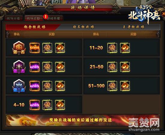 战场奖励包括称号、帮派红包、战场积分、器灵积分等。