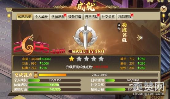 可以记录玩家的点点滴滴,达到指点条件后还可获得绑定元宝和成就点,达到指定的成就点后可以提升成就战力,增加属性提升战力。