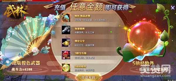 37《武林三》已开启首充服版本,玩家进游戏后在线就能领到首充奖励,奖励非常丰富,包括绝版橙色武器*1、68万银两*1、绑定元宝*588、3级宝石箱*1以及5倍经验丹*1。