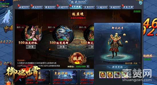 从第一个凤初神殿开始,到最后一个阳真境,玩家共可以攻打24个神殿中的96位BOSS,BOSS被击杀后有一段复活时间。在飞升神殿中,玩家可以自由PK,参与神殿BOSS击杀的玩家均可获得参与奖励。