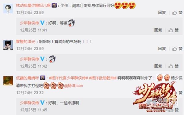 据悉,为了配合37《少年群侠传》宣传,在接下来的一段时间里,官方将继续放出一系列为代言人杨洋量身打造的“撩萌大片”,务求在呈现更多精彩游戏内容的同时,为广大粉丝打造一个前所未见的杨洋,全面释放男神的终极撩萌魅力。此外,游戏内的杨洋专属角色、真人语音问候,以及男神亲手设计的限量版周边等一大波福利,也已经在密锣紧鼓地筹备中,不想错过的“羊毛们”可要紧密留意游戏最近的动态哦!