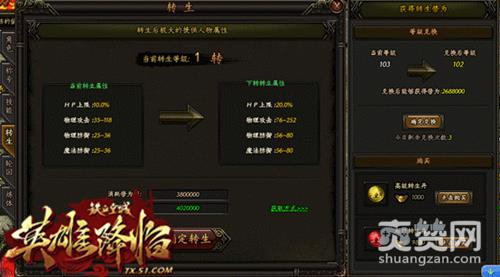 还有一串数据也不能错过,那就是降级时候获得的修为值。100~99:950000、101~100级:1500000、102~101:3525000、103~102:5040000、104~103:5300000、105~104:6400000修为值。转生成功就可以去51《铁血皇城》转生神殿夺取铁血系列装备。