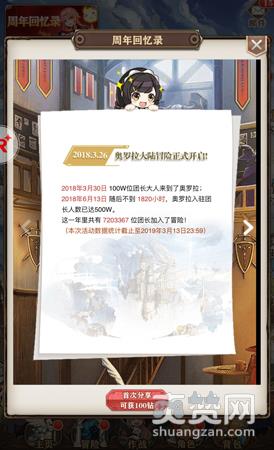 本次周年庆回忆录H5中,记录了每个团长大人故事开始的时刻,通过登录游戏,进入游戏主界面,找到右上的“活动”窗口进入活动版块,便可寻找到周年庆回忆录的入口,即可回忆起过去一年的冒险时光。在H5页面中,团长大人层冒险过的地图、召唤过的英雄都将会一一呈现出来,唤醒你的冒险记忆!那些与公会成员爆肝打工会副本的时刻,每个团长大人的战绩、钻石资产都会被一一盘点,这一年你都成长了多少?除此之外,分享周年回忆录还能得到掉落的神秘钻石奖励,想要秀个人战绩又想探秘神秘奖励的团长们,马上行动吧。登录《苍之纪元》游戏即可打开专属于你的周年回忆录!