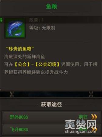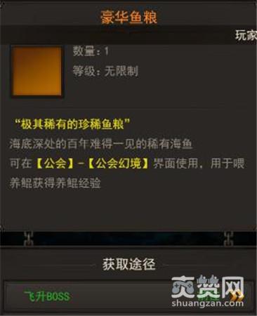 喂养鲲的鱼粮可以通过野外BOSS和飞升BOSS获得,其中飞升BOSS可以获得豪华鱼粮!快看,小编通过野外BOSS获得鱼粮了呢!